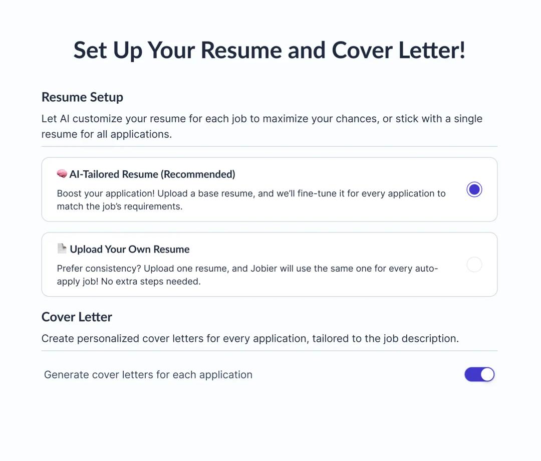 Let Jobier tailor your resumes and cover letters for each jobs application automatically.